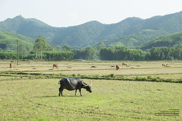 - Hình ảnh những chú bò thong dong gặm cỏ trên đê trong ánh chiều tà. Tất cả tạo nên một nhịp sống chậm rãi, đối lập hoàn toàn với sự vội vã nơi phố thị.