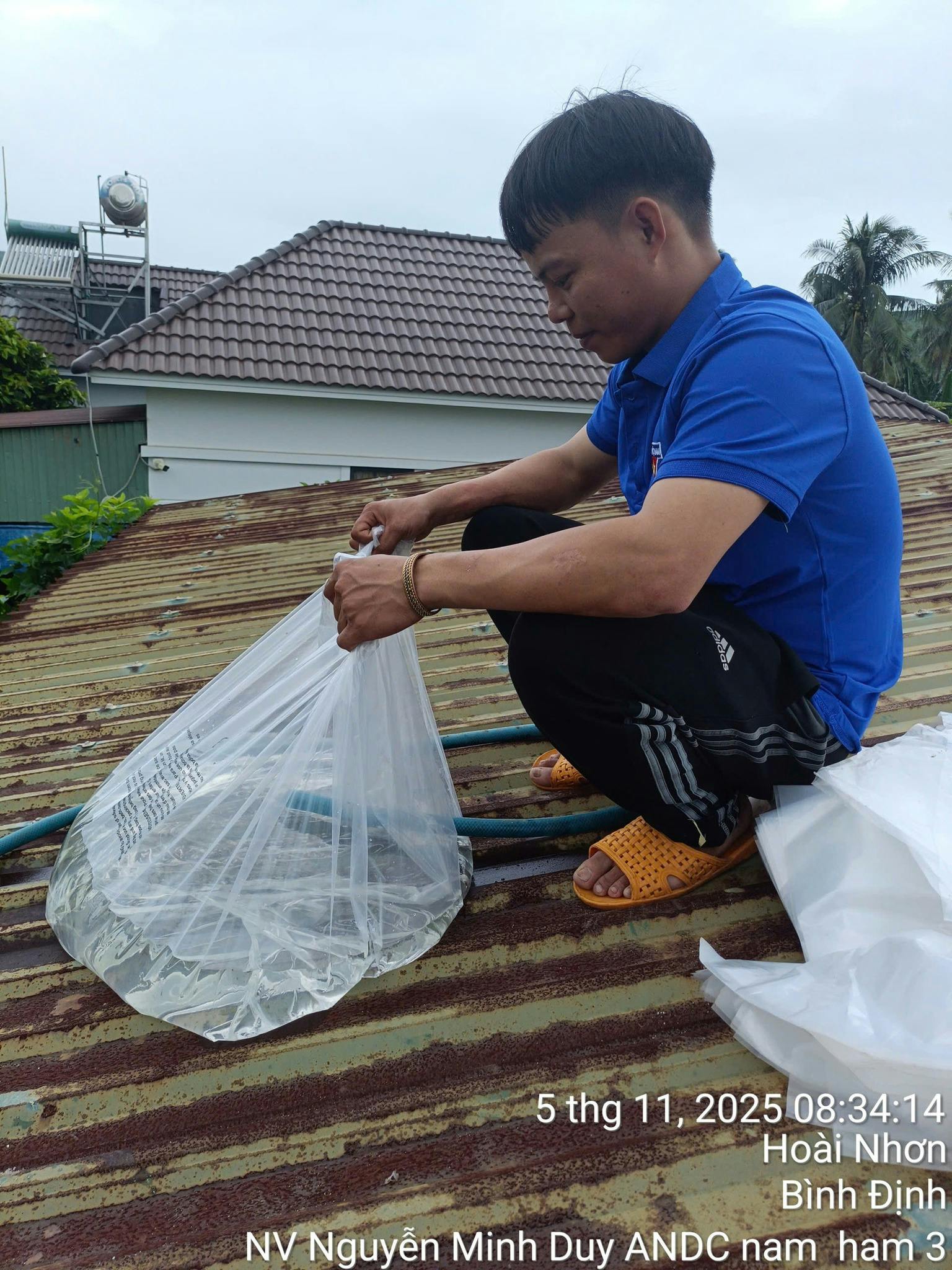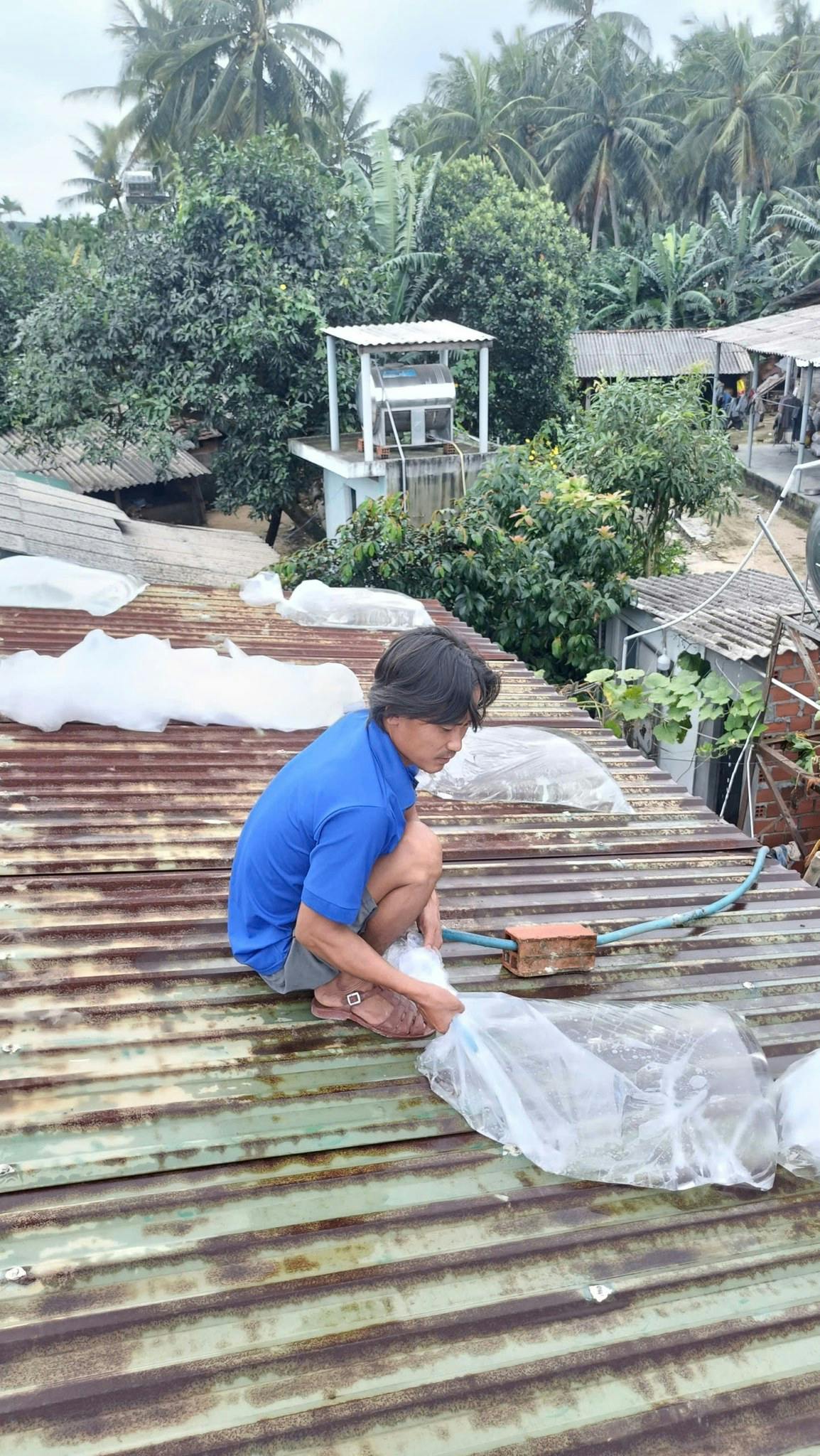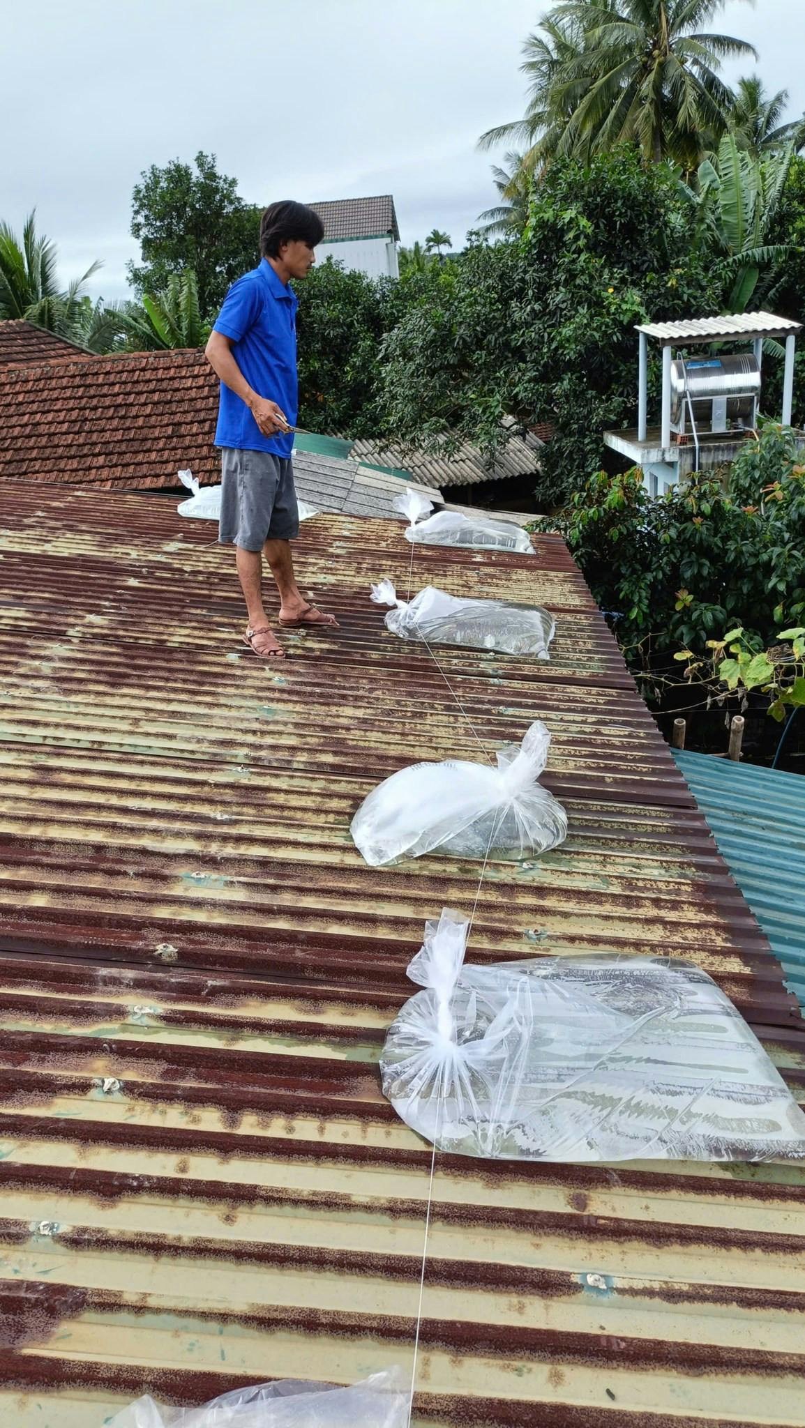 - Chằng buộc mái nhà: Dùng bao cát, bao nước và dây thừng chắc chắn để cố định mái tôn, gia cố các điểm yếu dễ bị gió cuốn.